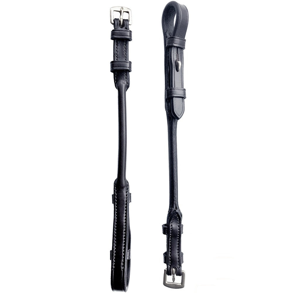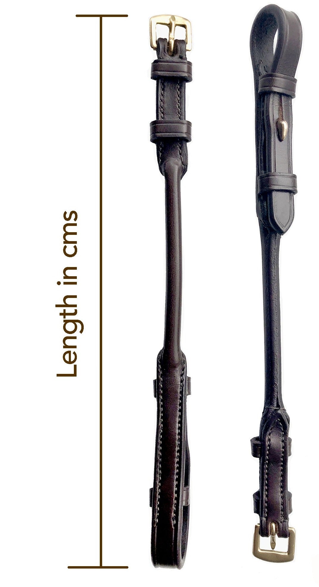 Rolled English leather, these handmade cheek pieces are beautifully stitched, have billeted ends and a total of four keepers each. They are half an inch wide and feature buckles and billets.